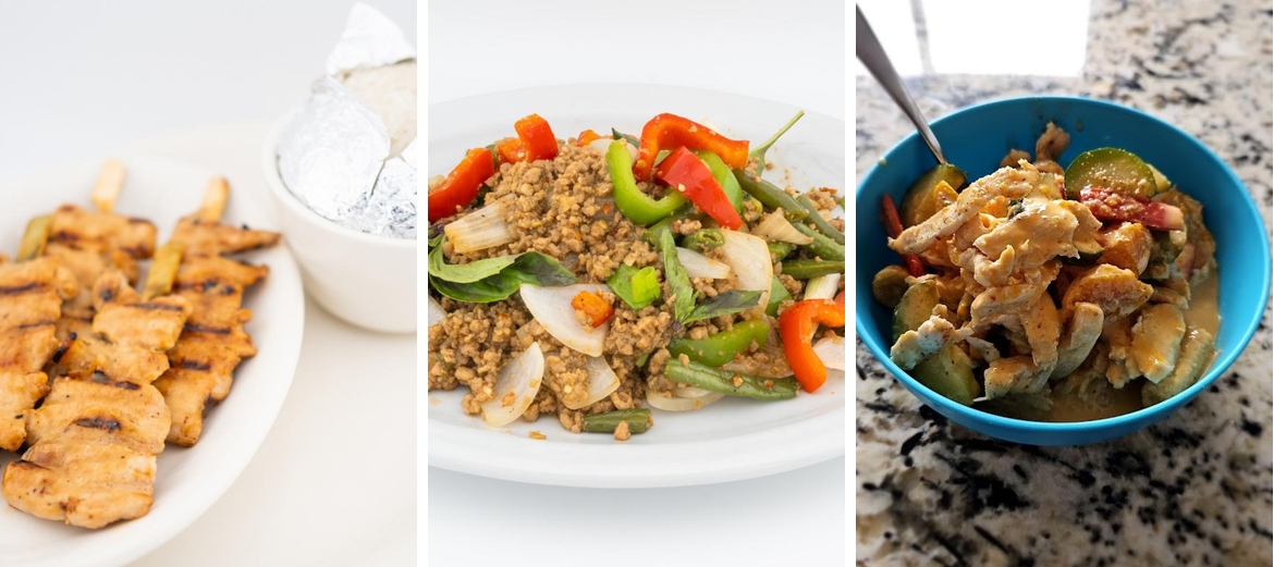 Stir fried basil consisting of basil, bell peppers, onion, chili, garlic and your choice of meat(Chicken, Beef, Pork, Tofu or Shrimp(+$2)). Served with white rice.